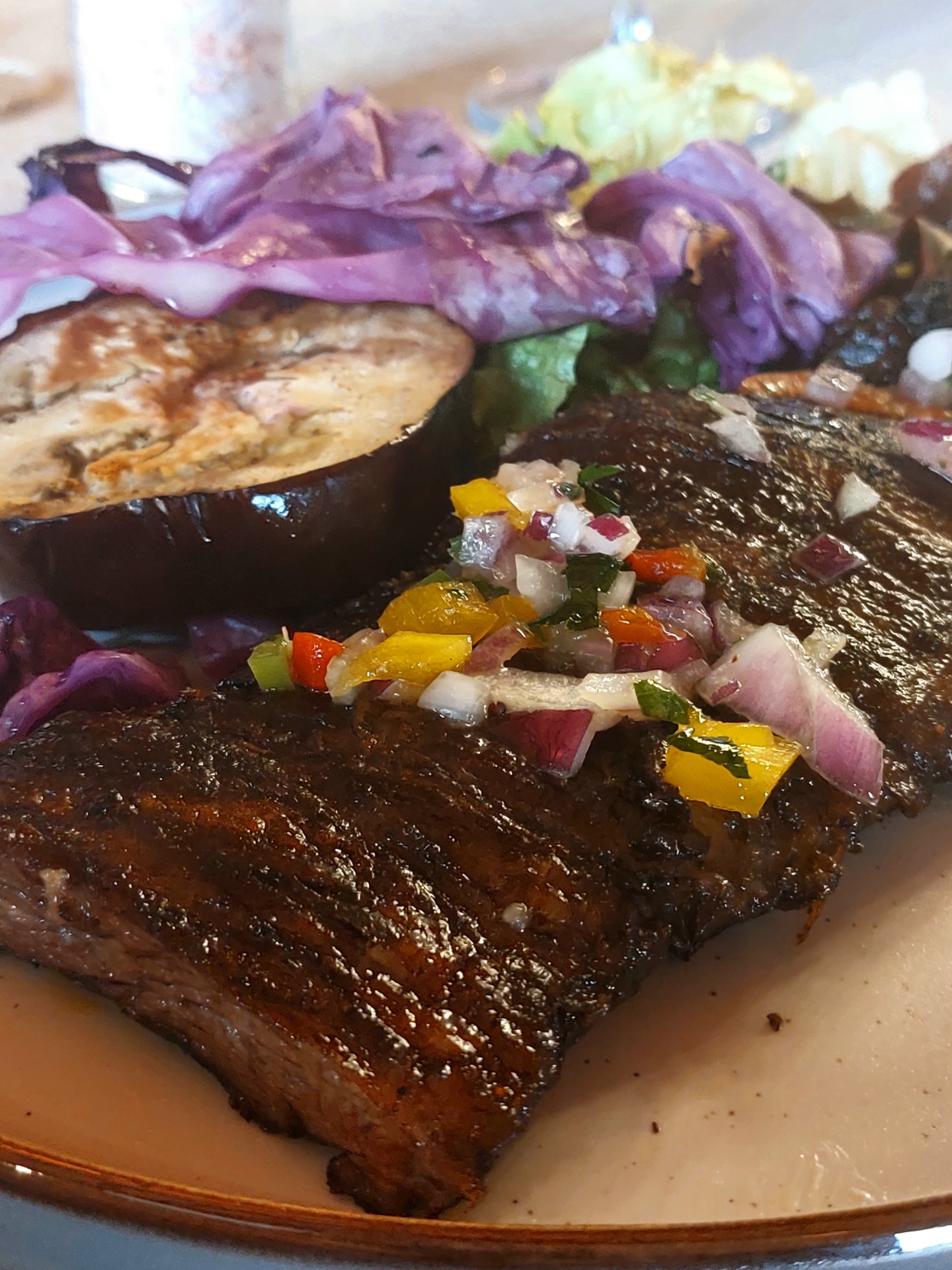 De esos fuegos supimos disfrutar las empanadas de carne cortada a cuchillo y vegetarianas, torta frita con hongos en escabeche, chorizo bombón en pan pebete, cordero a la estaca en pan de pita, pollo al gancho con limón, costillar de res con salsa criolla y pan de campo, vegetales ahumados, y entraña con chimichurri. Complementando el abundante y rico almuerzo: panqueques de dulce de leche por un lado, además de frutas asadas y en almíbar con mascarpone por otro. Todo delicioso!
