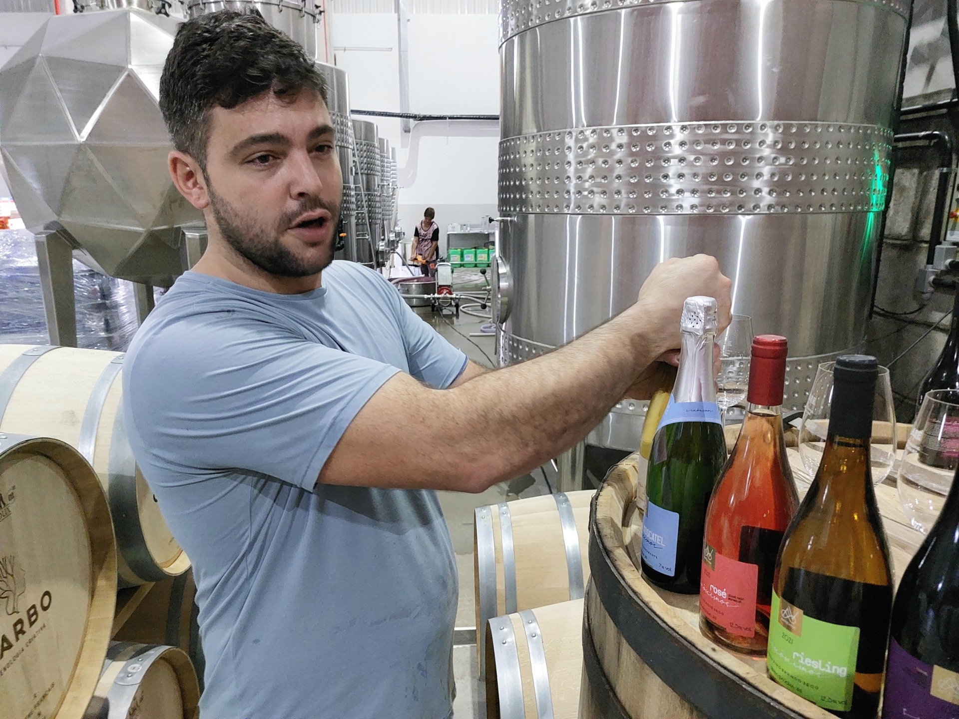 Recibidos por el joven enólogo Lorenzo Cristofoli, visitamos la planta industrial que - repleta de nuevos tanques de acero inoxidable - a partir de esta zafra 2022 se dedica 100% a la elaboración de vinos finos solamente, habiendo aumentado considerablemente su portafolio de productos y claro, las ventas.