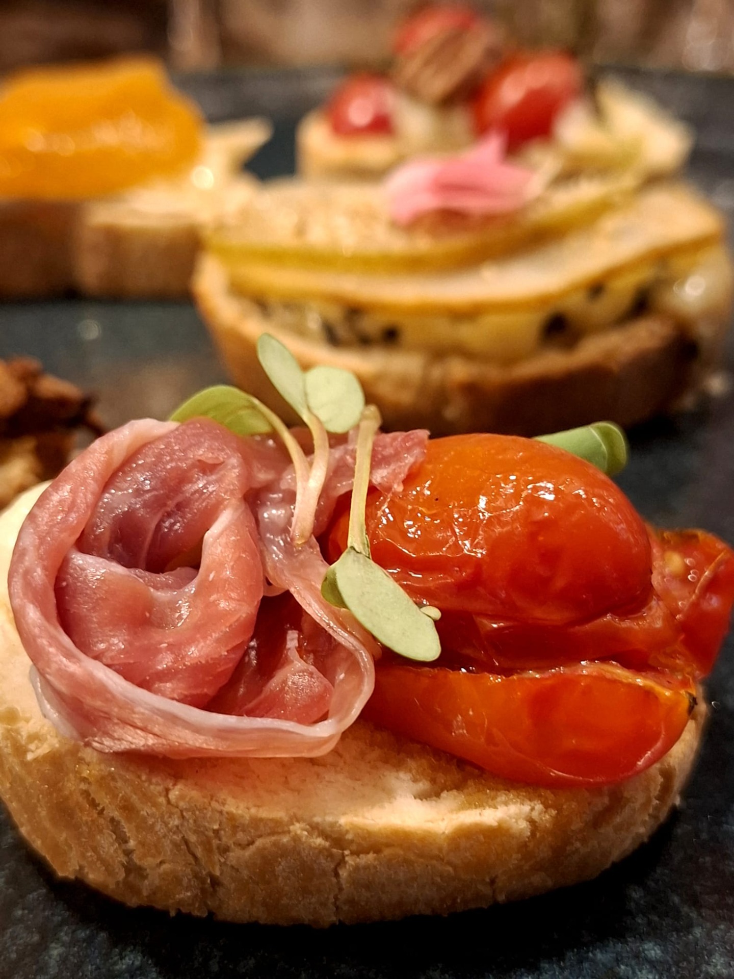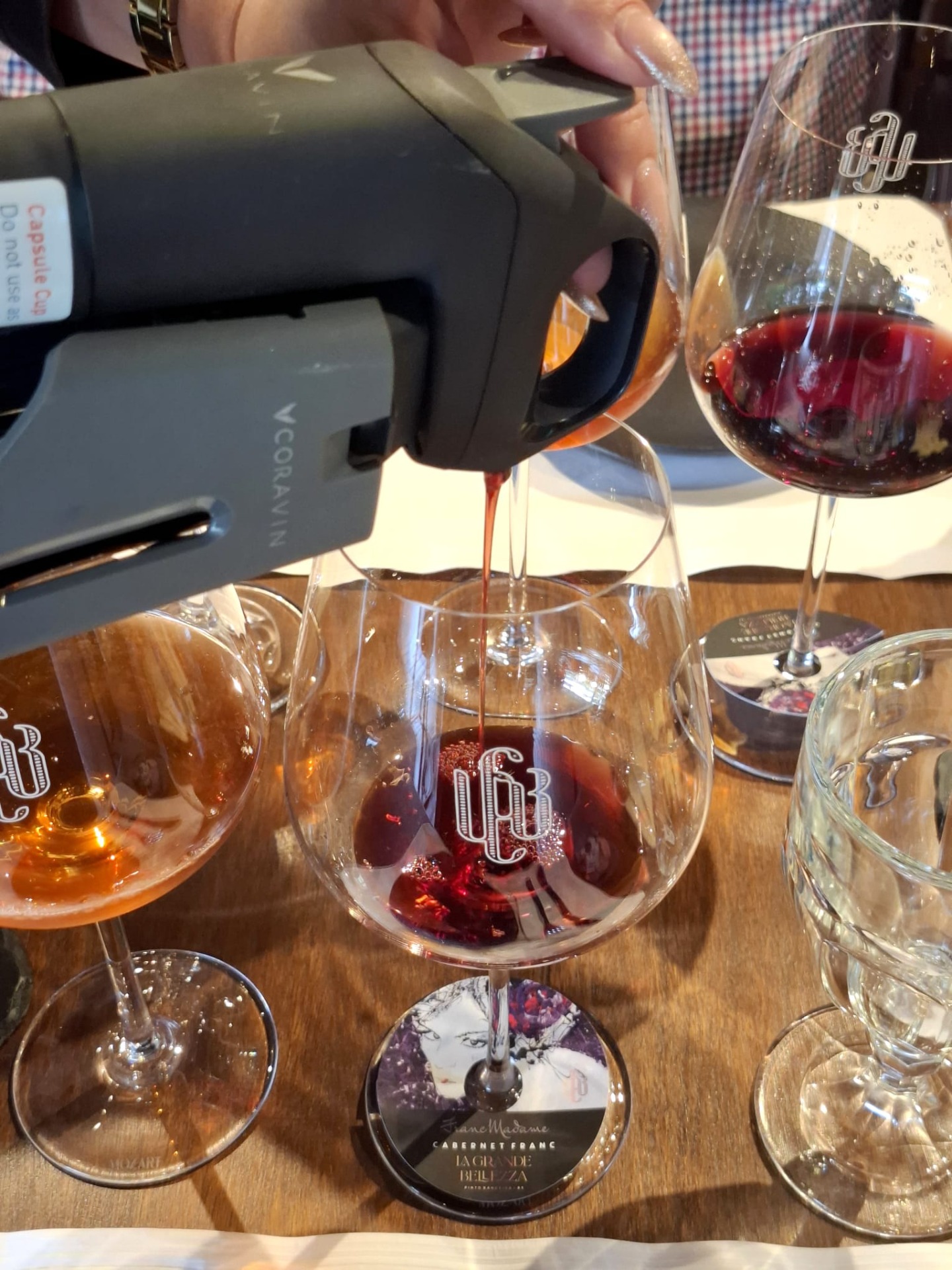 Allí probamos una excelente selección de vinos acompañados por bruschetas muy bien pensadas para cada uno de los rótulos entre los que se contaban un rosé de Pinot Noir, un Chardonnay con una corta crianza en barricas, un espumante Extra Brut Charmat, un tinto de Cabernet Franc, y para finalizar un espumante rosé de método tradicional que sorprendió por su elegancia y complejidad.