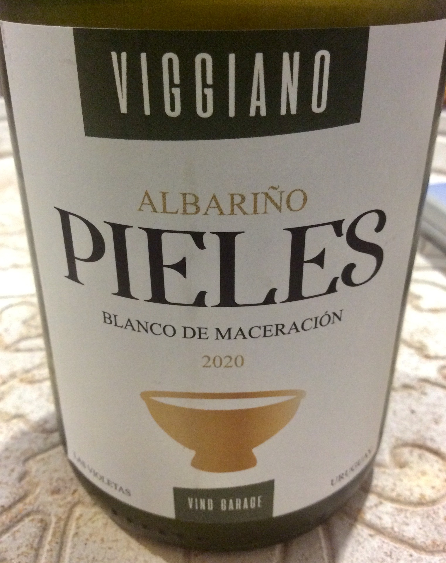 ¿Pero cómo es el Viggiano Pieles 2020? Su color es dorado con reflejos cobrizos muy brillantes, su perfume es frutal y especiado, trayendo recuerdos de manzana roja madura, aceite de coco, canela, y algo herbáceo, con un sutil toque de miel. En la boca es amplio, voluminoso, con un leve tacto tánico, y final largo con acidez bien equilibrada. Ideal para beber no muy frío, en el entorno de los 12 grados. Lo probamos acompañado de una empanada gallega elaborada con merluza, y aunque no contábamos con cuncas para degustarlo, en las copas este vino se lució de maravillas.